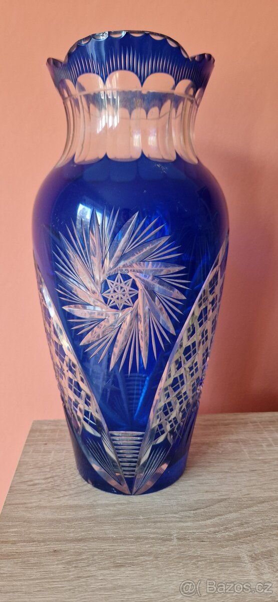 Technika: barevný potahovaný křišťál – z vnější strany je nanesena vrstva kobaltově modrého skla, do které se následně ručně brousí ornamenty (tzv. „potažené sklo, overlay“).