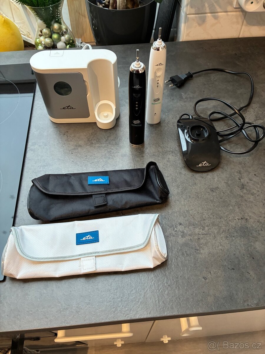 Set dvou zubních kartáčků ETA Sonetic, UV sanitizéru, nabíječky a cestovního pouzdra zajistí dokonalou dentální hygienu vám i vašemu partnerovi. Použito minimálně , děti nechtějí , původní cena 2850 Kc.