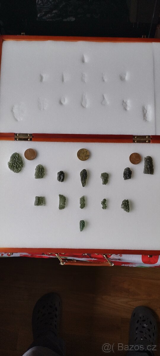 Dobrý den. Prodám tuto pěknou kolekci vltavínů. Pouze jako celek s dřevěným vyvložkovaným pouzdrem. Váha činí 49 gramů.