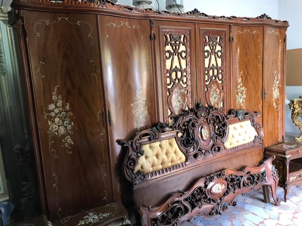 Predám krásnu starú Taliansku spálňu v barokovom štýle.Krásna,drevená,rezbovanáručne maľovaná.Skladá sa z postele, skrine, komody so zrkadlom a 2 nočnými stolíkmi .Ku posteli nie je rošt ani matrac. Šírka skrine až 330cm nie každému sa zmestí .Do štýlového interieru. Skriňa sa dá rozložiť kôli preprave. Obhliadka samozrejmosťou.