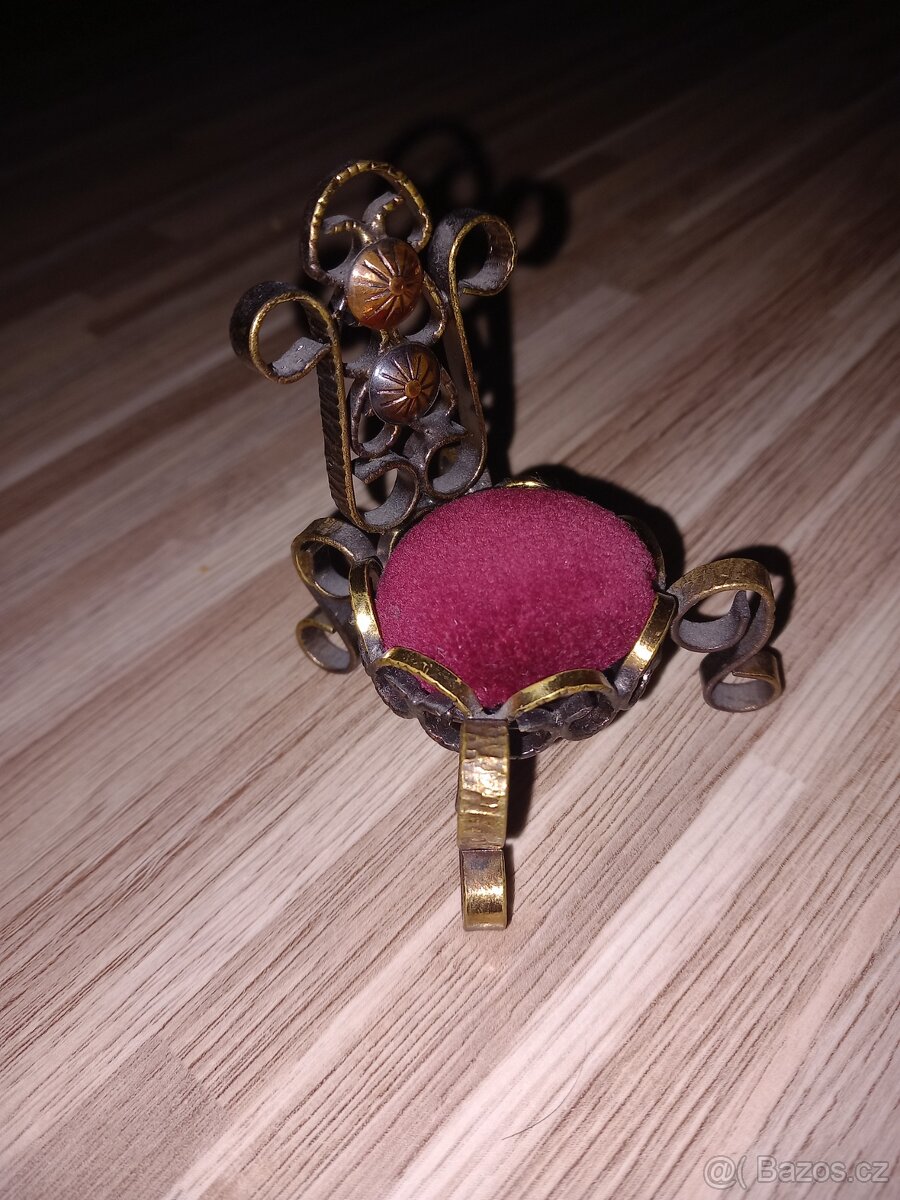 Prodám retro křesílko mini. Kovové tělo, střed semišové čalounění. V zachovalém stavu. Rozměry výška 7,5 cm, šířka 5,5 cm. Cena 200 Kč + 80 Kč zásilkovna, balíkovna. Platba předem na účet. Osobní odběr.