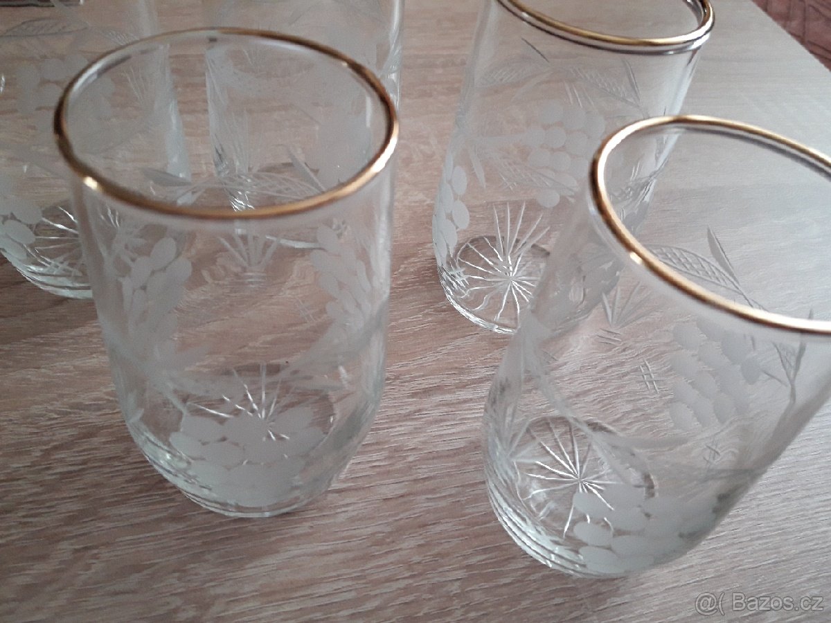 Prodám skleničky s motivem hrozen a zlatým okrajem. 6 ks.