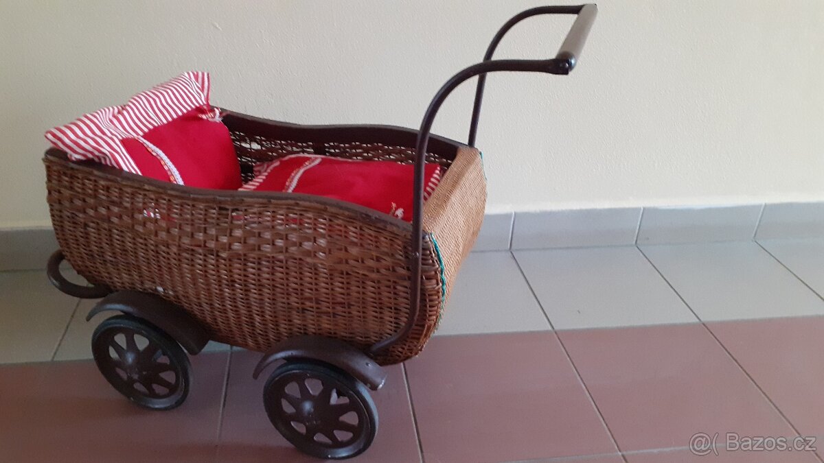 Nabízím proutěný retro kočárek pro panenky, včetně ušitých peřinek. š32×v40×d60. Pouze osobní odběr v Brně.