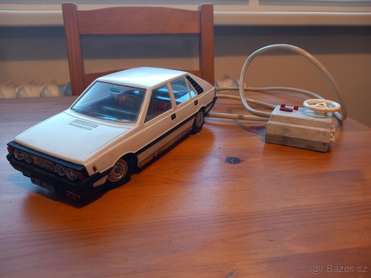 Prodám Polonez bílé barvy na bovden, CZZ, polske retro autíčko na ovládání, pěkný stav, nic prasklé, hezká retro hračka, svítí, jezdí vpřed i vzad, struna je celá, není prasklá, ale jde ztuha, nutno rozhýbat, možná výměna za Škoda 110r od Ites, jinak cena 3500 Kč
