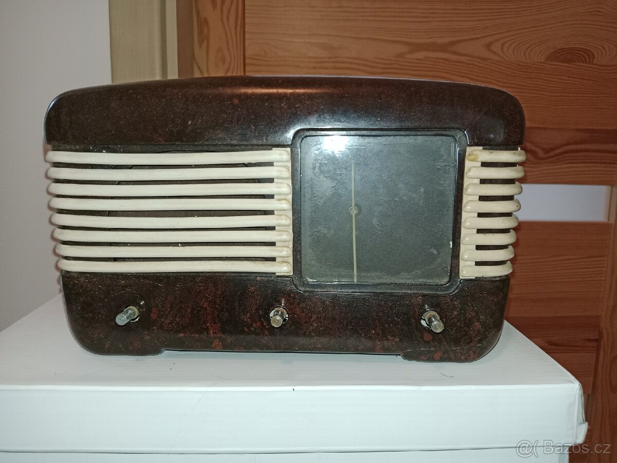Skříň prasklá, slepená, u spodu kousek chybí. Šasi zachovalé.