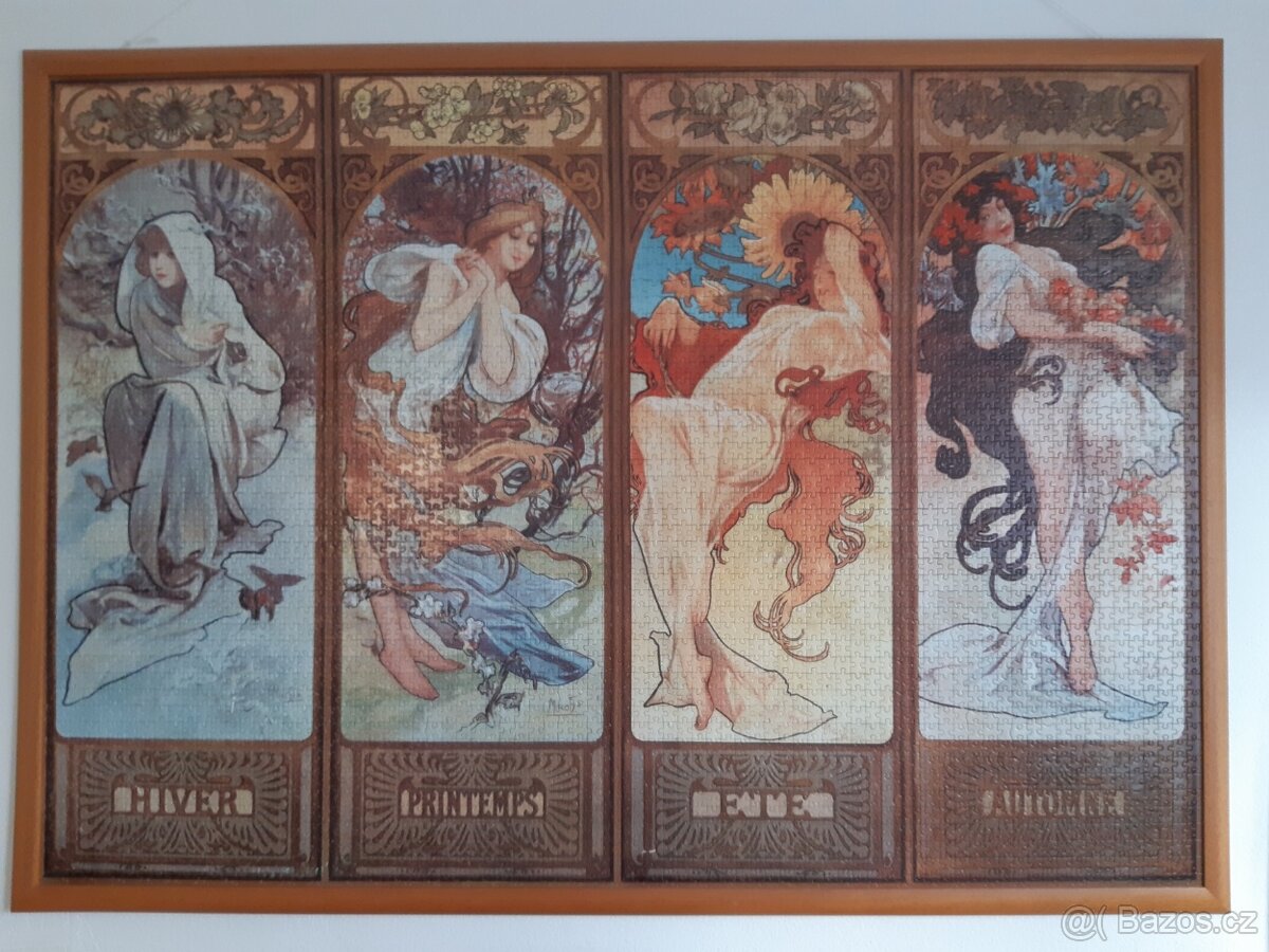 Obraz je sestavené puzzle, nalepené na podložku, lakované a zarámované.
