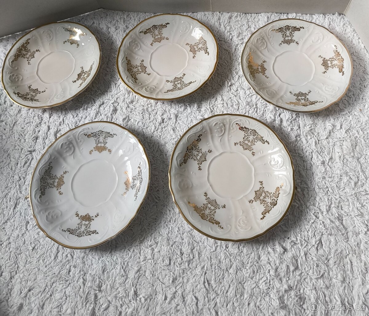 Malé talířky se zlacením.Jeden bílý, ostatní slonová kost.