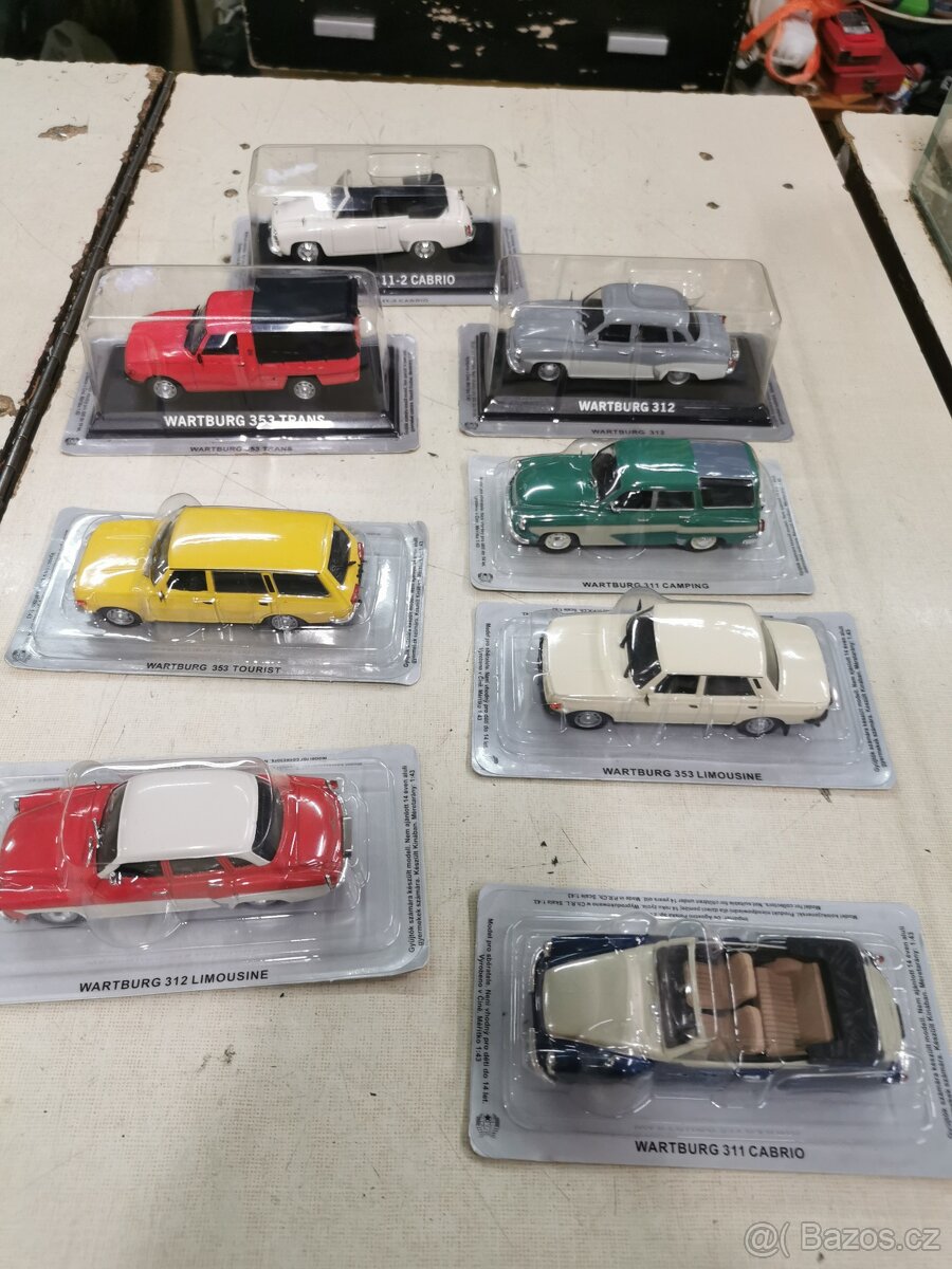 Modely v měřítku 1:43. Wartburg, Trabant. Cena za kus.