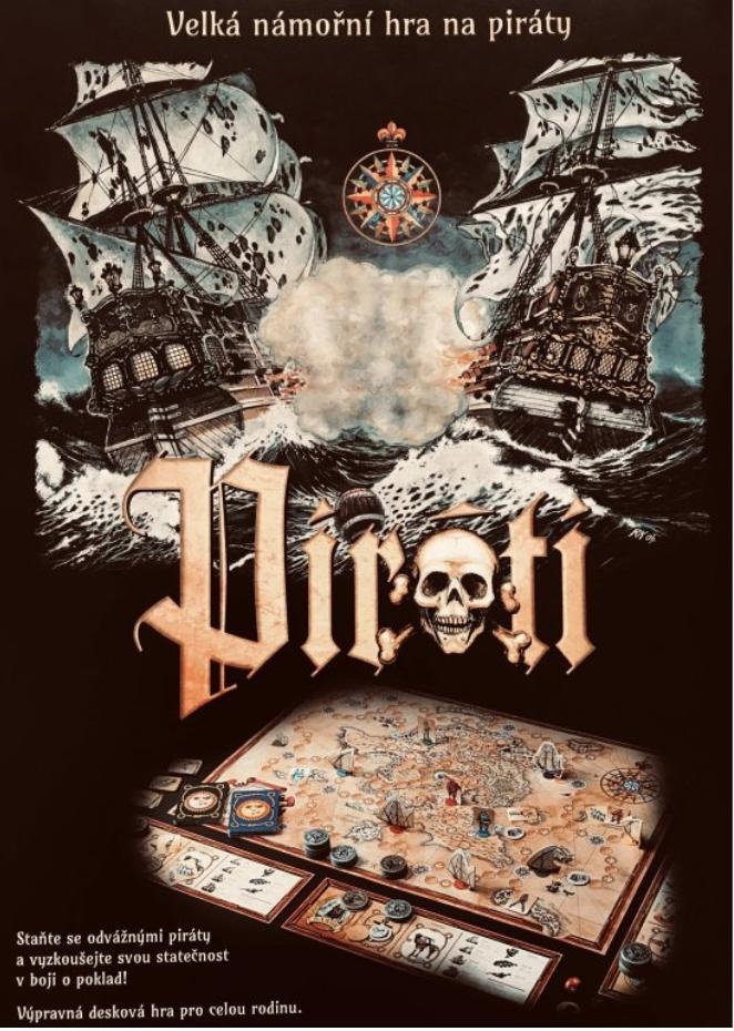 Velká výpravná desková hra pro celou rodinu. Obsahuje 350 nádherně ilustrovaných komponentů: hracích karet, figurek pirátů, karet náhod, zlatých a stříbrných mincí, lodí a dalších částí včetně speciální dvanáctistěnné kostky.