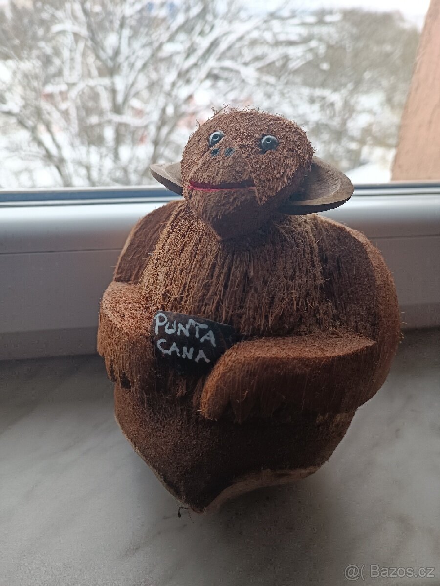 Opička z kokosového ořechu. Zajímavá dekorace -exotika. na chalupu nebo dětského pokoje.