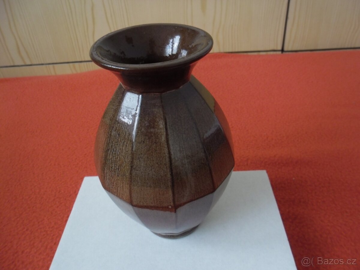 Prodám hnědou keramickou vázu, výška 17 cm, průměr nahoře 7 cm.