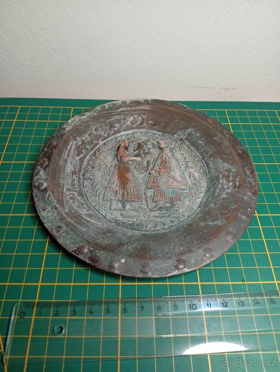 STAROŽITNÝ MĚDĚNÝ TALÍŘ TEPANÝ