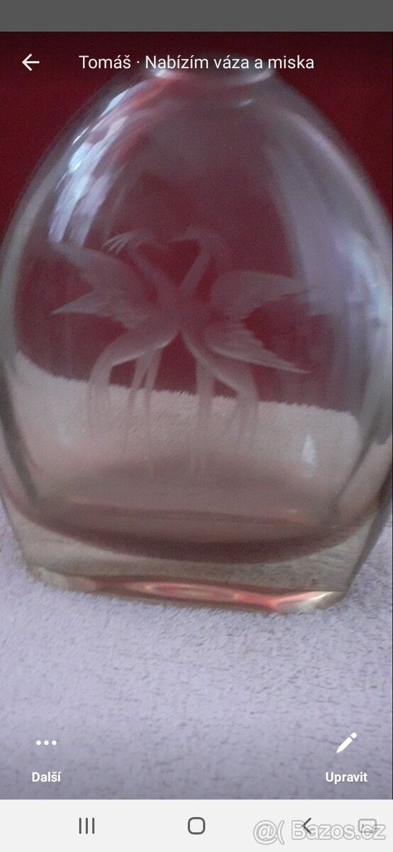 Nabízím starší neposkozenou vazů z hutního skla zdobenou obrázkem.