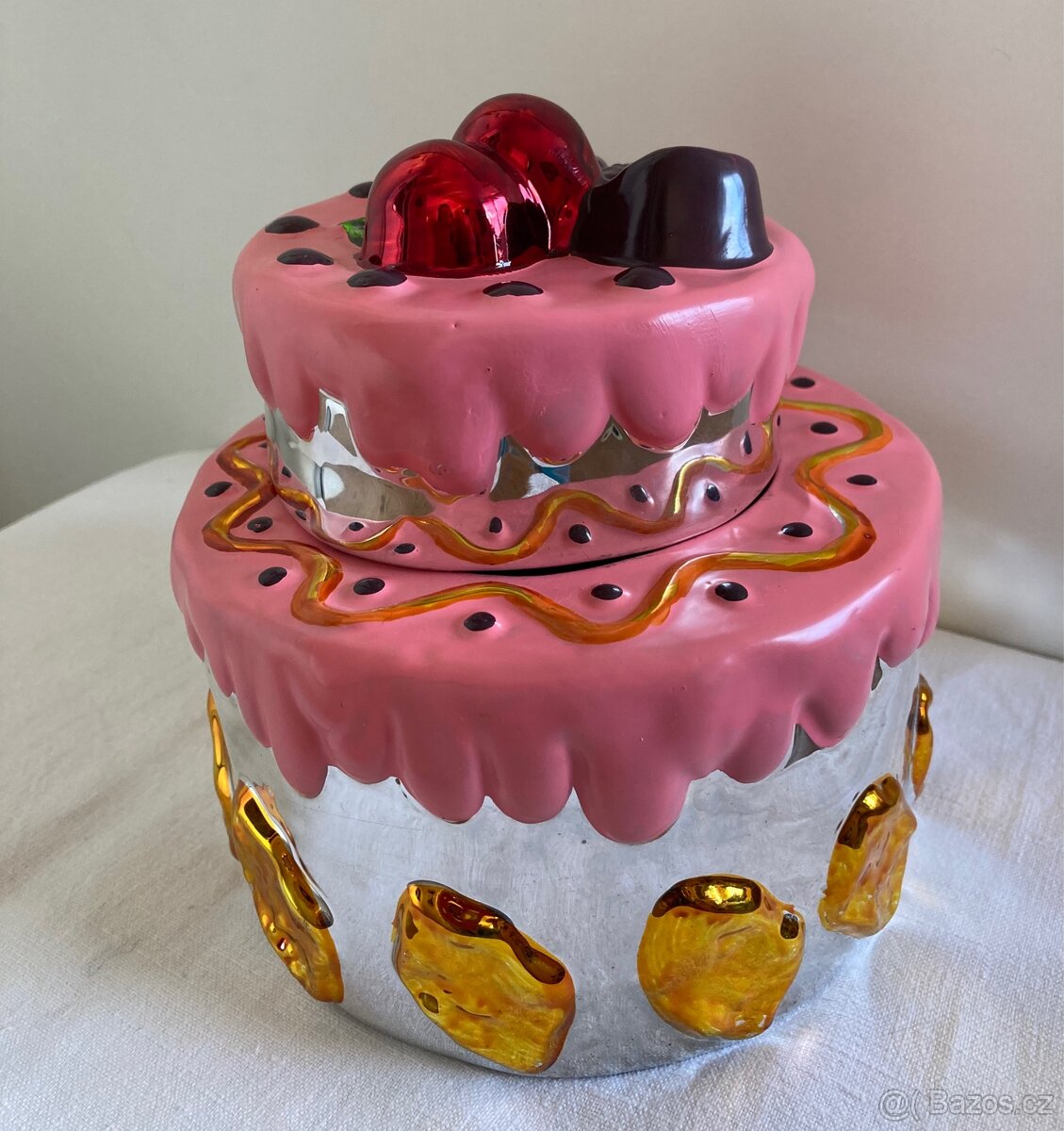 Výška 16,prumer spodniho dílu je 15.Krásný darek k narozeninam.
