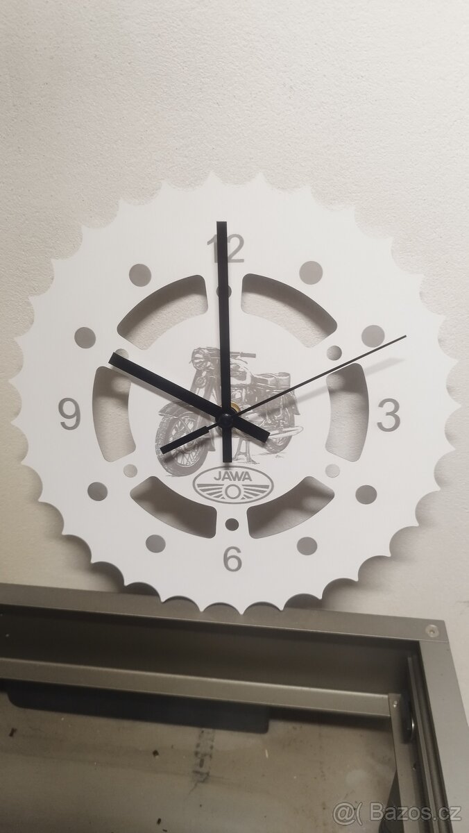 Hodiny tvar brzdového kotouče nebo rozety. Moto hodiny