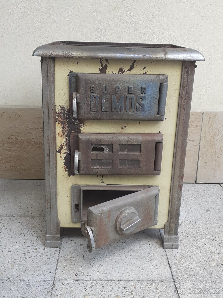 Nabízím starožitná malá kamínka americké výroby zn. DEMOS SUPER, nálezový stav, nutná renovace. Cena 1 000,- Kč. Vlastní odvoz - Jičín.