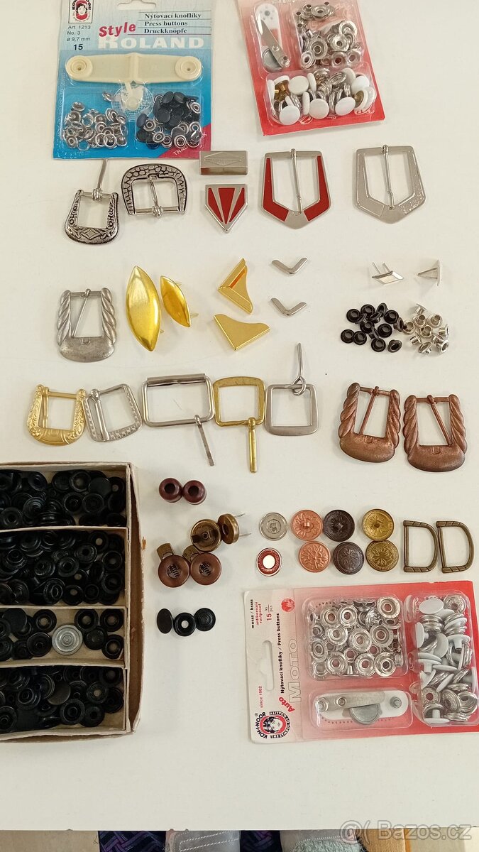 Z důvodu uzavření šicí dílny nabízíme za výprodejové ceny textilní kování (cvočky, očka, magnetické buldoky, přezky na opasky, spony, ozdobné rožky, špičky, koncovky, drzdičky atd.). Podívejte se i na naše další inzeráty.