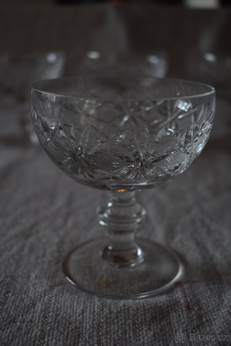 Široké skleničky na noze. 6ks viz foto. Výborný stav. Balné 50,-Kč