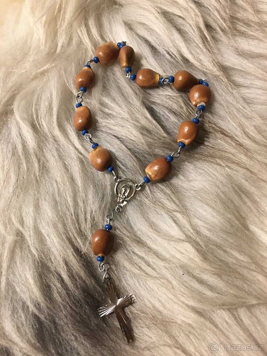 Ručně vyráběný desátkový růženec z vrtaného klokočí.Vhodný do kapsy, na cesty nebo jako ochránce do auta. Možná varianta se sv. Kryštofem.