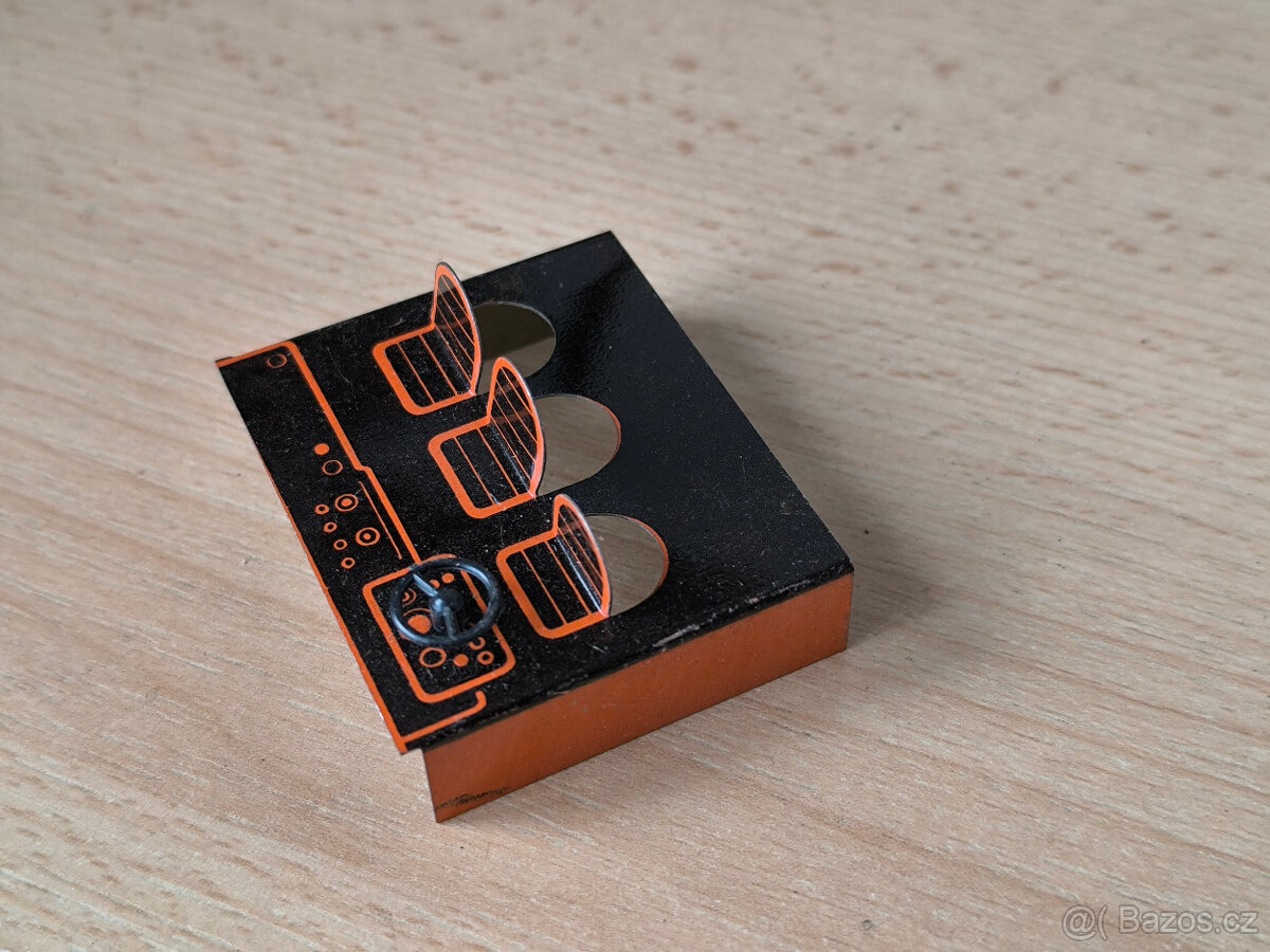 Nabízím na prodej starou hračku - plechový interiér sedadla s volantem do plechového autíčka Tatra 815 KDN, jedná se o originální kus ze 70.-80.let.