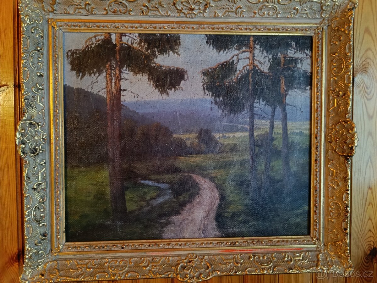 CESTA V LESE cca. 50x60cm bez rámu, olej, má pozlacený rám