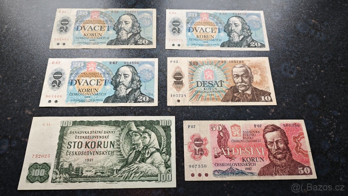 Nabízím 6 ks Československé bankovky z let 1961 - 1988.