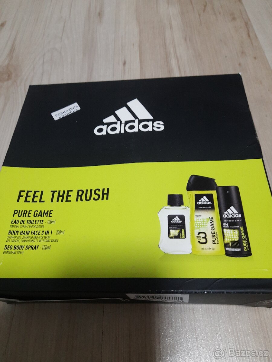 Nabízím Dárkovu sadů Adidas (poškozená krabica)Sada obsahuje:sprchový gel 250ml .+spray 150ml.i toaletova voda 100ml.Produkty su vporadku jenom krabice poškozená. Kto by měl zájem kontaktujte mně na číslo 739 151 458 anebo na email preferují osobní předání v Plzni po dřívějším skontrolovani produktů ale můžu taký poslat přes zasilkovnu na dobírku děkuji.