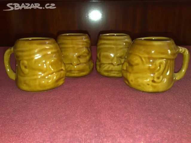 Žertovné stylové hrnečky dosud pouze vystavené a nepoužívané, hladká lesklá glazura, nepoškozené, TOP stav.