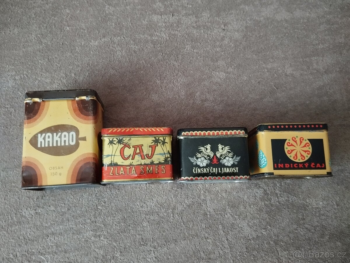 Plechovky čaj, kakao