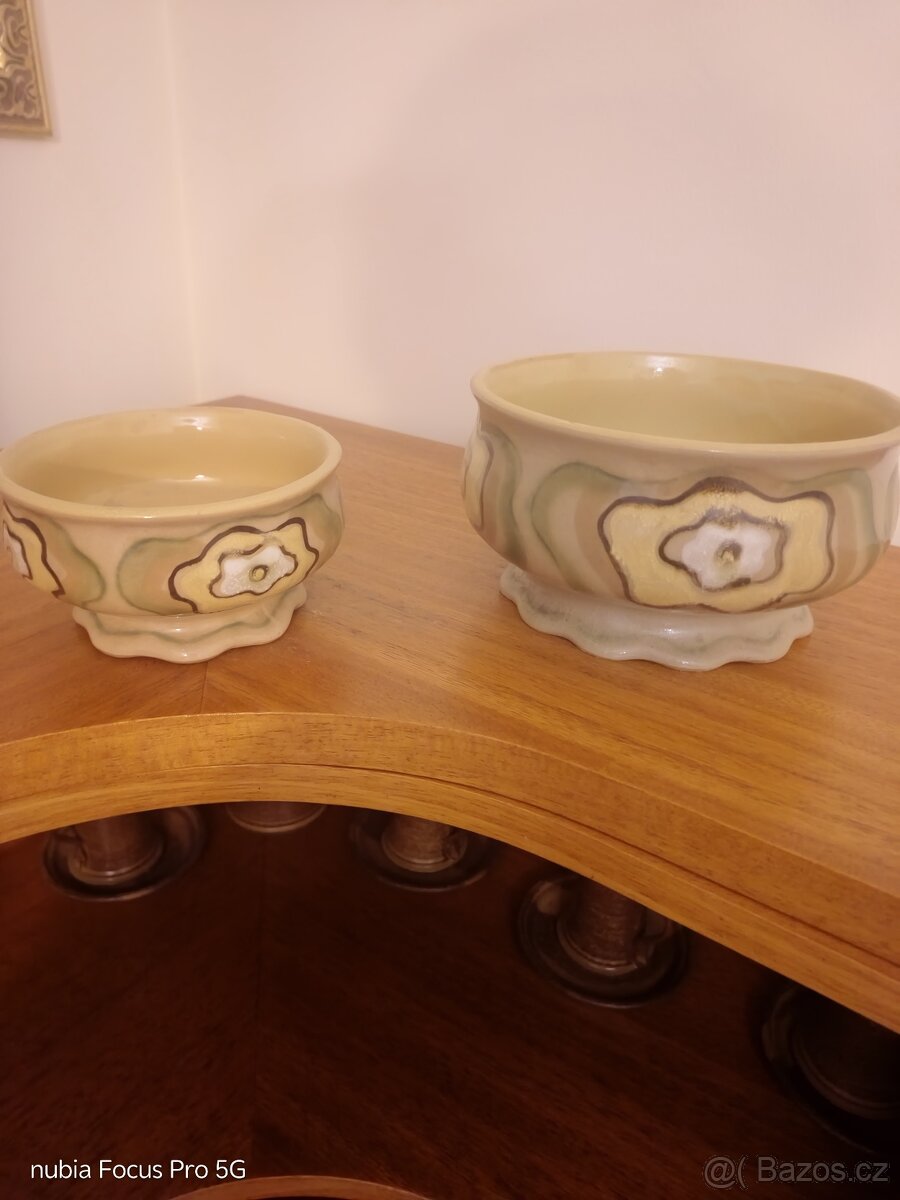 Keramicka sada - [1.1. 2026]Nepouzivana,jen vystavena.Velka misa s poklickou,4 misky a nadobka na stavu