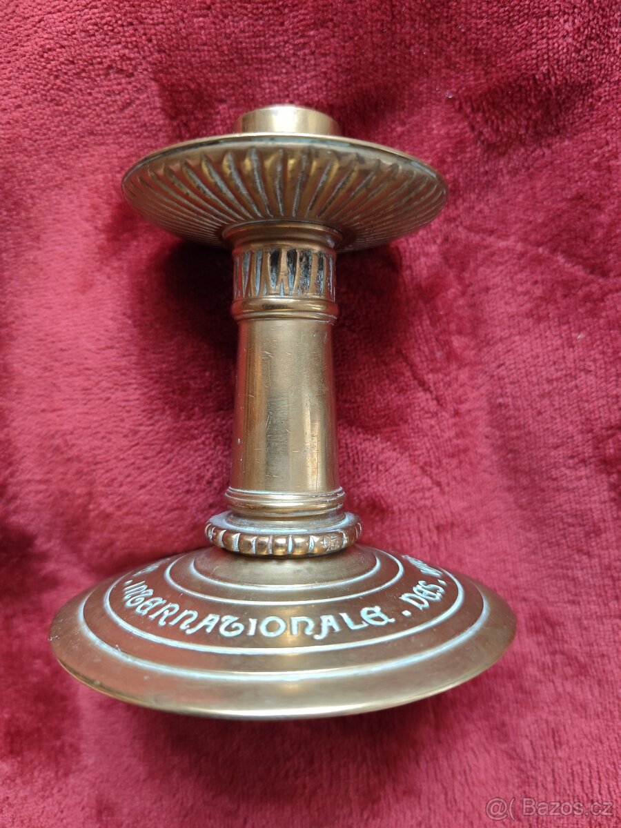 Nabízím tímto zajímavý mosazný svícen s nápisem COMPAGNIE-INTERNATIONALE-DES-WAGONS-LITS. Byla to společnost provozující mimo jiné slavný vlak Orient expres. Rozměry svícnu: v112mm,š105mm. Svícen je rozebíratelný. Vzhledem k tomu že není vyloučeno že se skutečně svícen "svezl" ve slavném expresu-neměl by chybět ve sbírce vášnivého sběratele železničních artefaktů. Osobní vyzvednutí vítáno. Jinak dle domluvy. Kontakt jen tel na č 777930350
