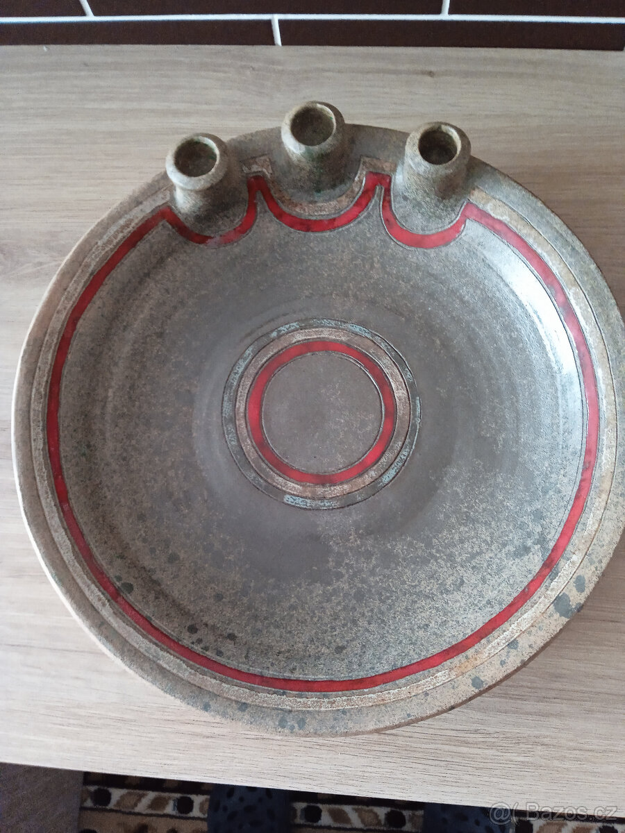 Krásný talíř z keramiky na tři svíčky,bez vad + poštovné.Průměr 29cm.