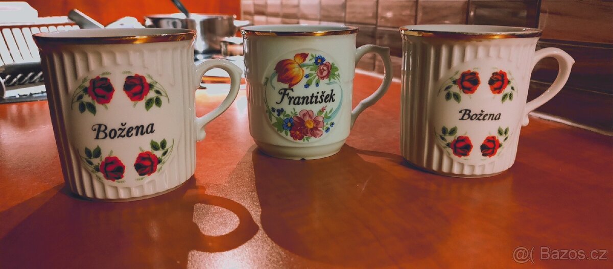 Staré hrnky porcelánové made in Czechoslovakia, jména Božena , cena za kus 100 Kč , mám 2 kusy