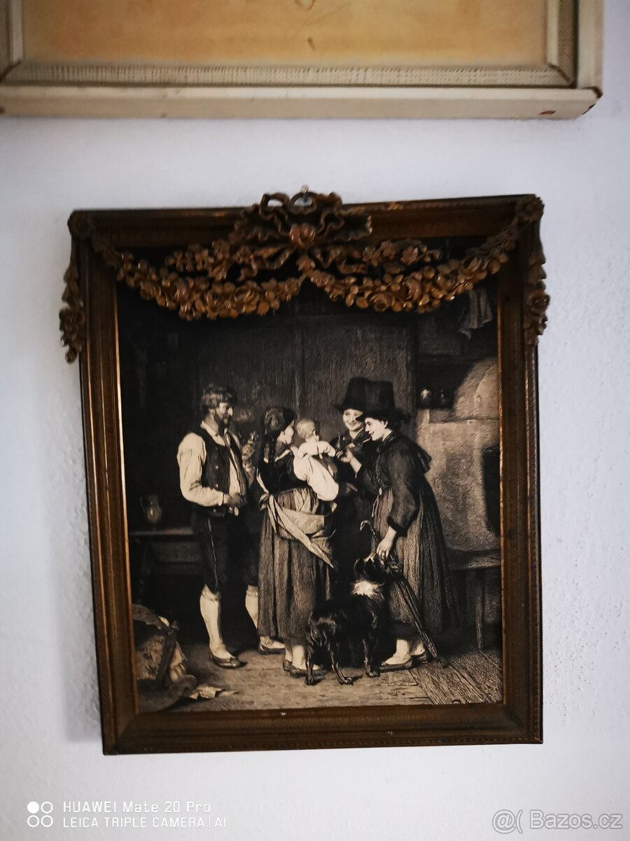 Krásný starý bidermaier obrázek na plechu - [27.12. 2025]Starý krásný malovaný obrázek na plechu..bidermaier