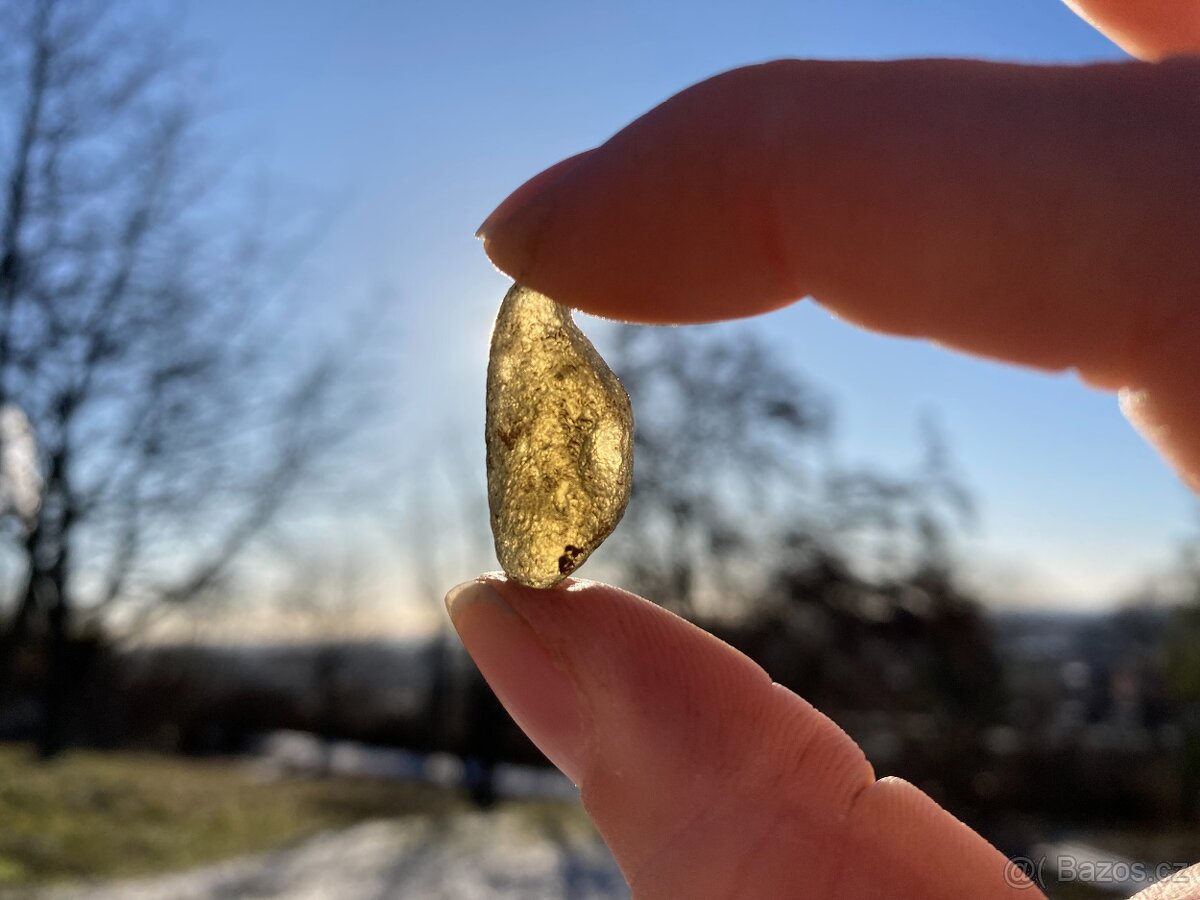 Nabízím k prodeji vltavín z lokality Suchohrdly. Rozměry tohoto kusu jsou 11x23x7 mm a hmotnost je 2,3 g.