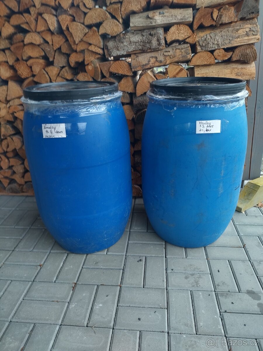 Prodám dva modré sudy s víkem -na kvas, vodu, obilí apod.