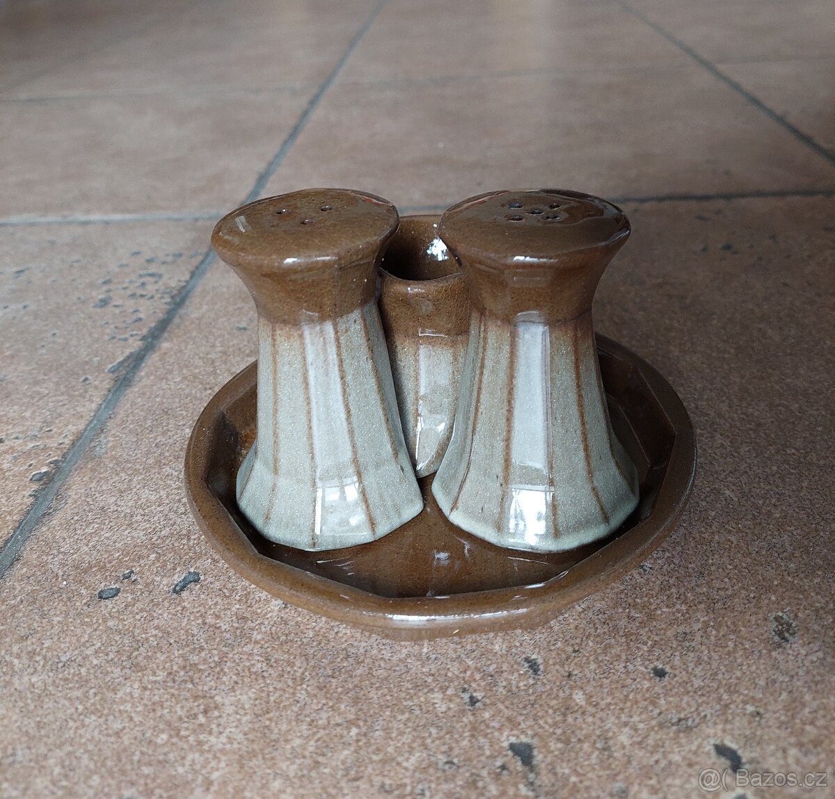 Zcela nová, nikdy nepoužitá keramická souprava (slánka, pepřenka a párátka). Vyrobeno v Čechách, v již dnes neexistující firmě Keramo Brunšov. Zaslání možné.