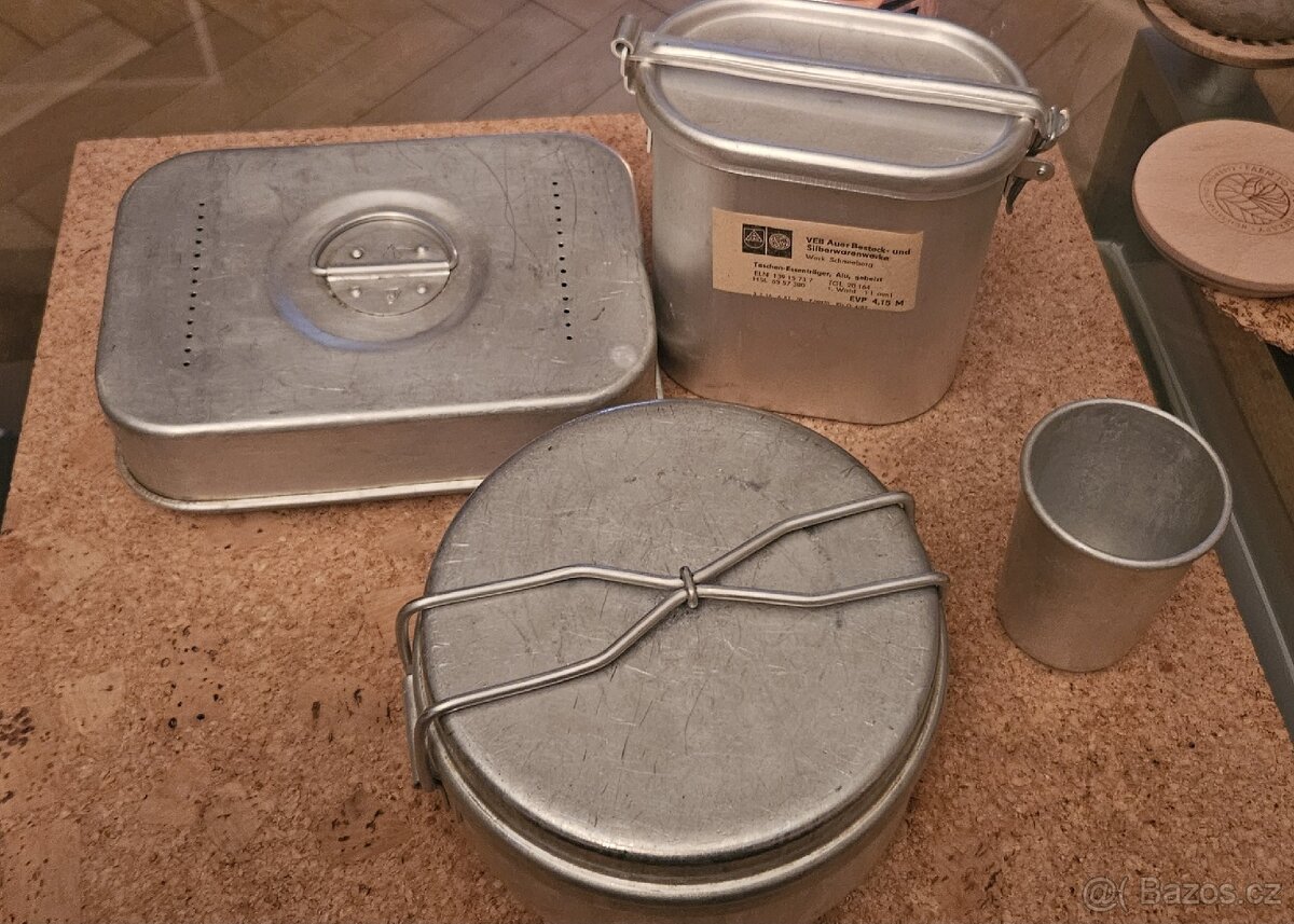 Retro chrastítka - [14.1. 2026]Retro chrastítka a kousátka, hliníkové nádobíčko ze 70.let. Cena za vše.