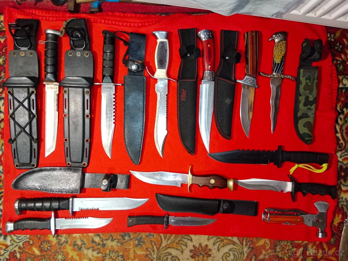 Nože, dýky s pochvami atd. 13 ks