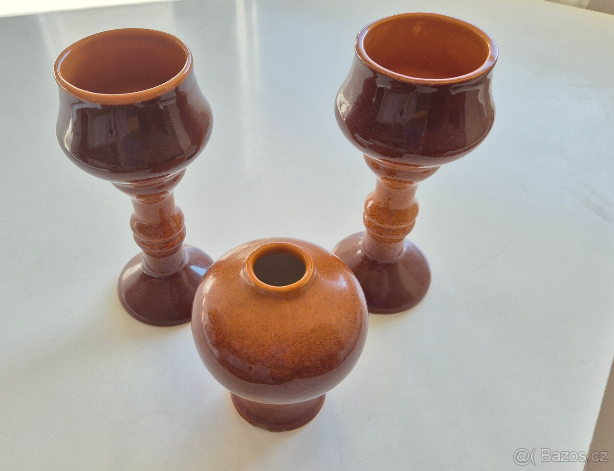 Keramické číše a nádoba - Keramo Kožlany, rok nevím, asi předrevoluční. Předání Praha 8 metro Střížkov nebo Mnichovo Hradiště.