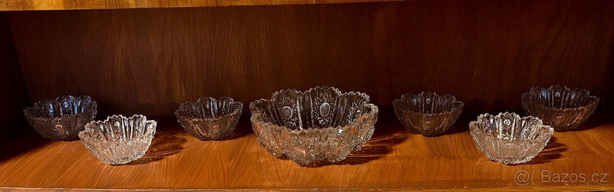 Prodám sadu 7 misek z bezolovnatého křišťálu, možno mýt v myčce. Rozměry větší misky 20 cm průměr, 7 cm výška, váha 1,4 kg, menší misky 10 cm průměr, výška 5 cm. Bez poškození. Vzhledem ke křehkosti předání pouze osobně v okolí Uherského Hradiště.