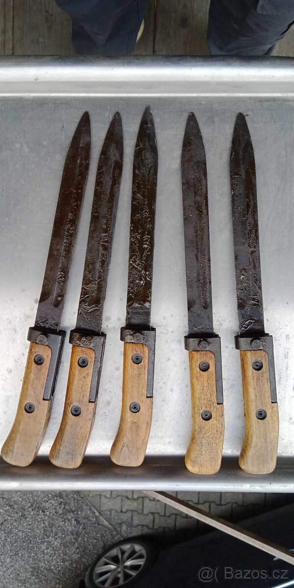 prodám dřevene bodáky s pochvami ( nové nikdy nepoužite , pak mirne použite a použite). Bodáky házecí s prodlouženým řapem. Dále sumky PS kožene 1000 , platene 2000. Ceny dohodou .