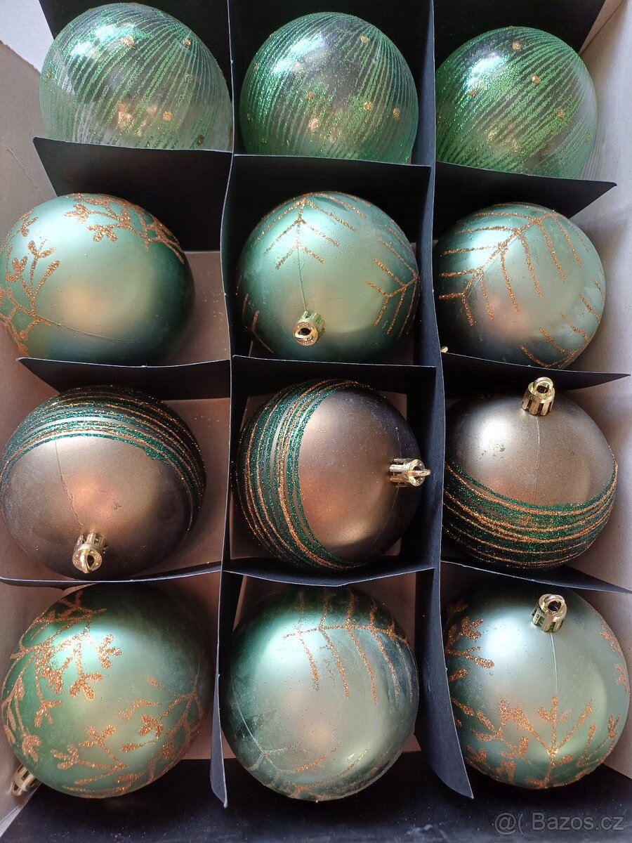 12 kusů nových nepoužitých,nerozbitných ,zeleno-zlatých baněk