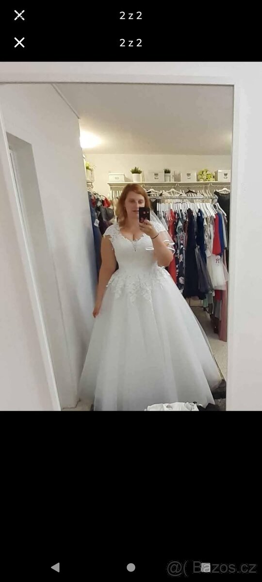 Svatební šaty včetně obalu. Jsou na zavazování tudíž maji velkou rozteč velikostí. Je to mezi 40 az 48. Šaty jsou vyčištěné. Možnost vyzkoušet v Brně. Kupovala jsem je nové v salónu. Mela jsem na sobě samozřejmě jednou. Pouze osobní odběr.