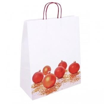 Vánoční taška s potiskem - motiv vánoční ozdoby červené v bílém pozadí.