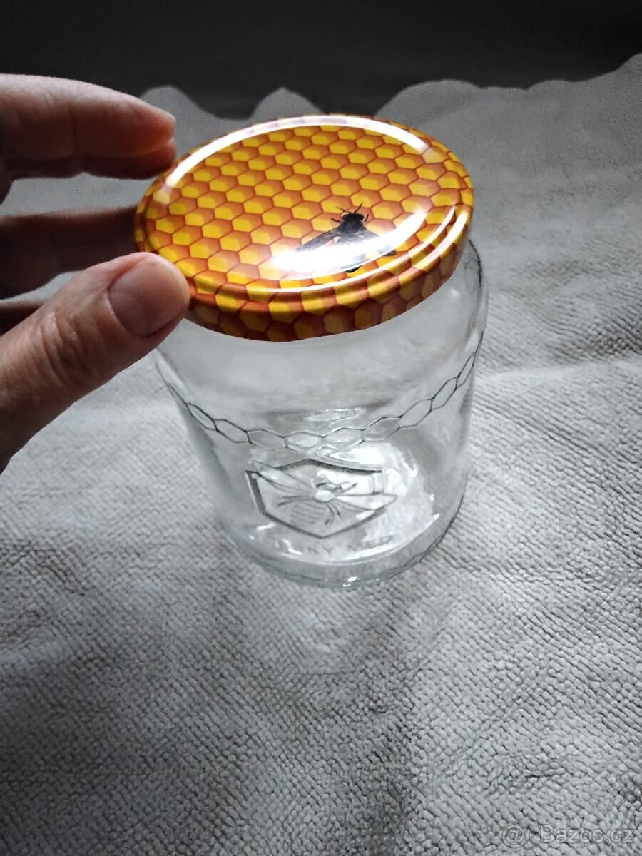 Sklenice od medu 540g jednou použité asi 15ks cena 5kc.pouze psat a osobní predani