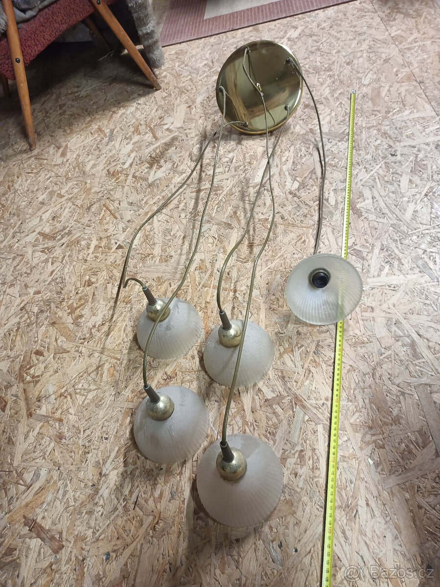 Materiál kov, sklo. Barva zlatá + mléčné sklo. Do odmontování funkční. Zaprášené od skladování, nečištěno.
