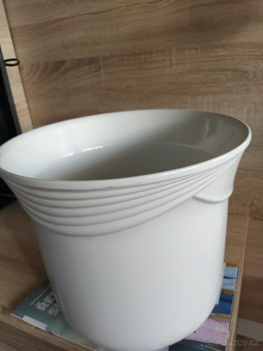 bílý, vintage style, průměr nahoře 29cm, níže 23cm, výška 25,5cm. Nový a nevyužiji.
