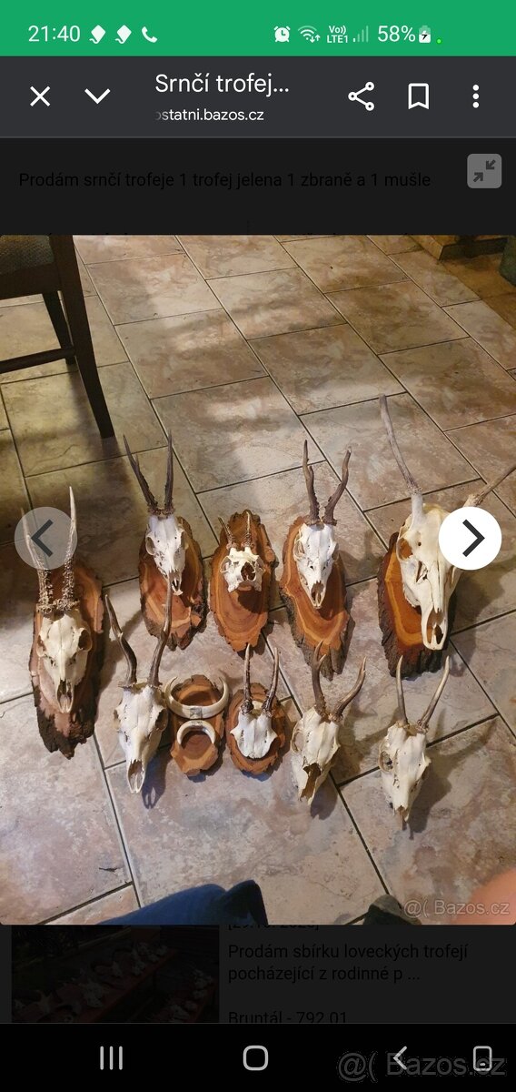 Prodám trofeje cena za ks 100