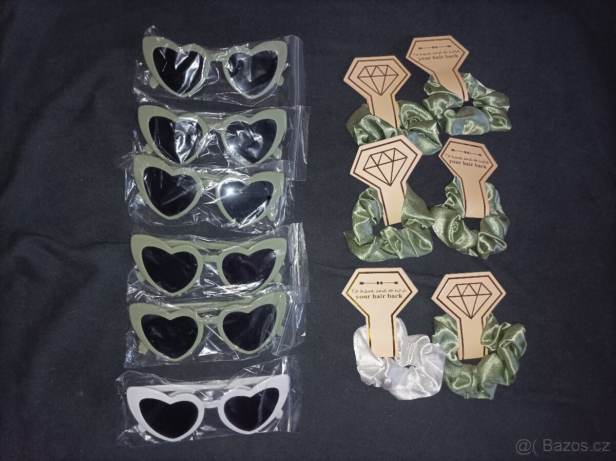 Nové jen rozbalene pro foceni. 5 zelených a jedny bílé. K tomu gumičky do vlasů. Mám i plast Harry Potter, viz další předměty. Při více ks slevy